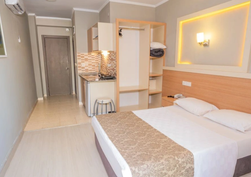 Smeštaj: Hotel raspolaže sa 155 smeštajnih jedinica. Studio sobe (spavaća soba, kupatilo, max 2 osobe), Apartman sa jednom spavaćom sobom (spavaća soba, dnevni boravak sa mini kuhinjom, spavaća soba i dnevni boravak su odvojeni vratima, kupatilo, max 4 osobe), Apartman sa dve spavaće sobe (dve odvojene spavaće sobe, dnevni boravak sa mini kuhinjom, kupatilo, max 6 osoba). Sve sobe imaju kupatilo sa kadom ili tuš kabinom, klimu, direktnu telefonsku liniju, mini bar (prazan), ketler, sef (uz doplatu), SAT TV i muzičke kanale, balkon ili terasu.